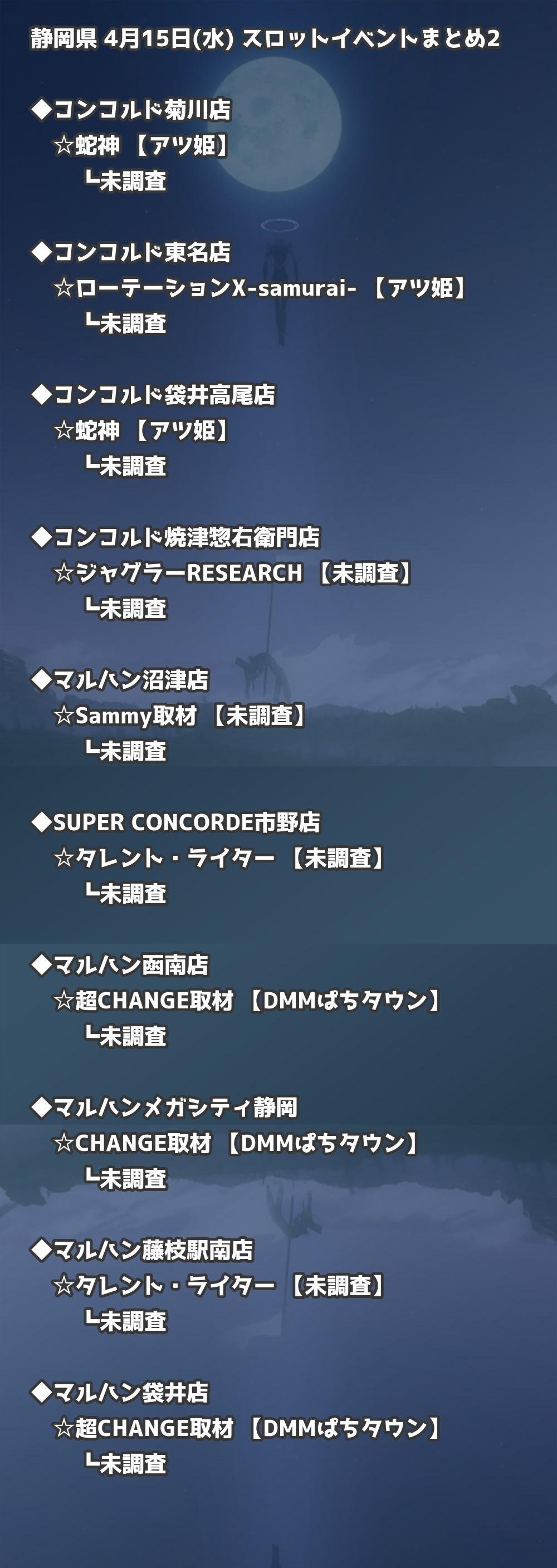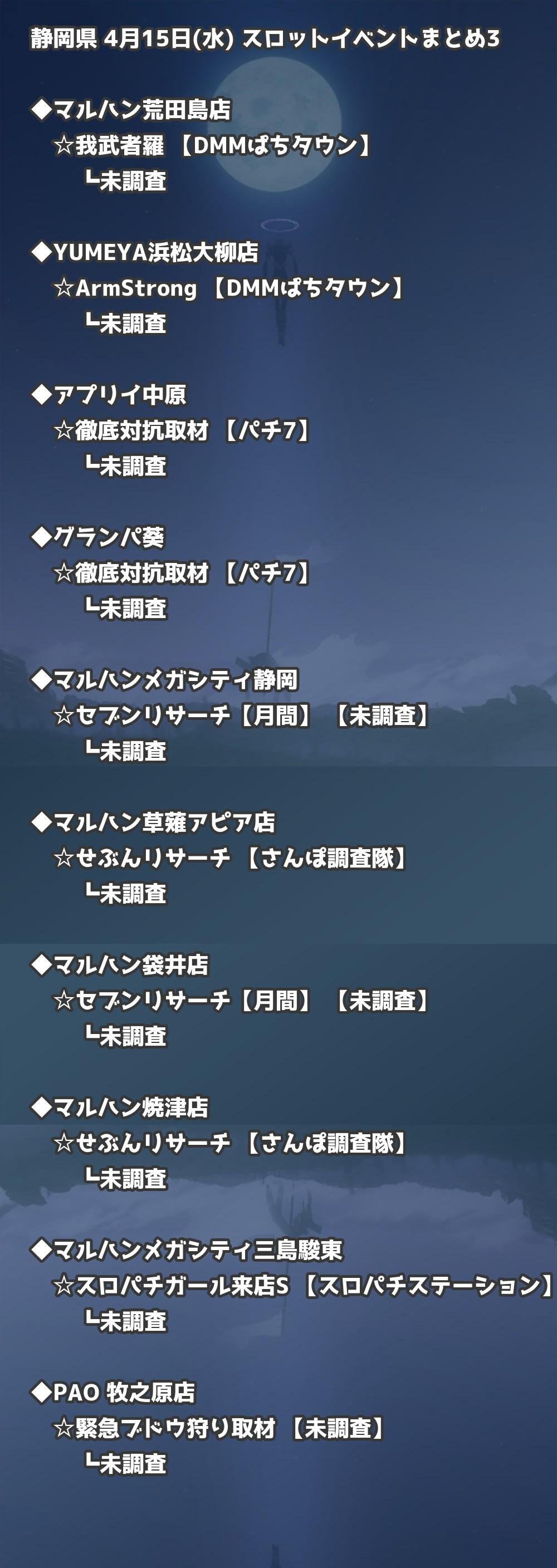 📊 静岡県 4月15日(水) 勝てるパチンコ・スロット取材店舗一覧|おすすめ順