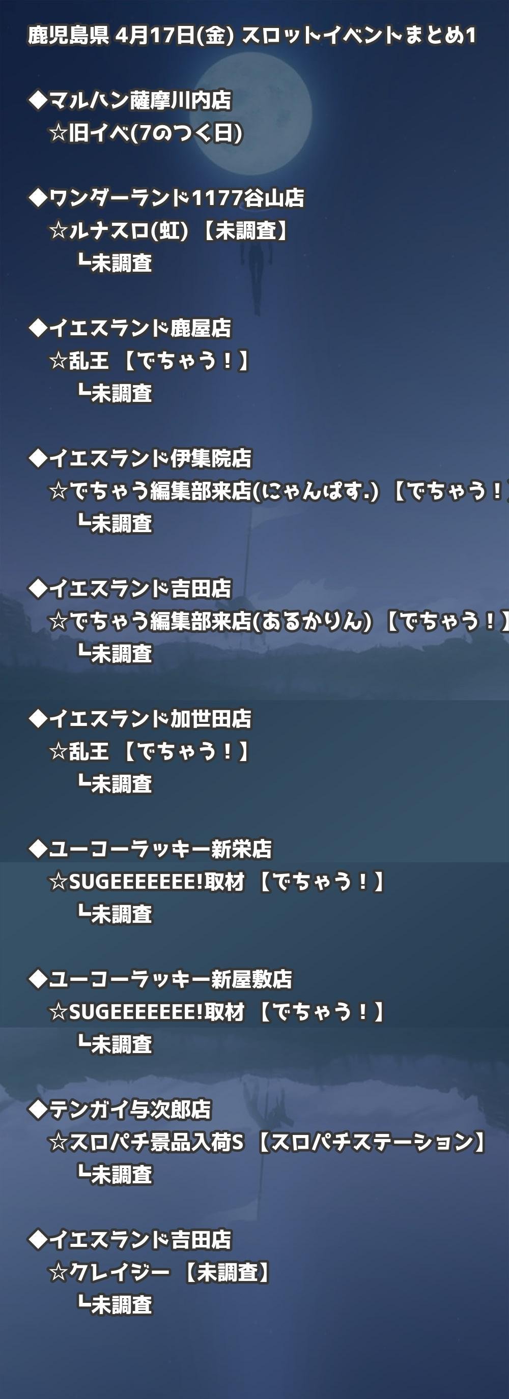 📊 鹿児島県 4月17日(金) 勝てるパチンコ・スロット取材店舗一覧|おすすめ順