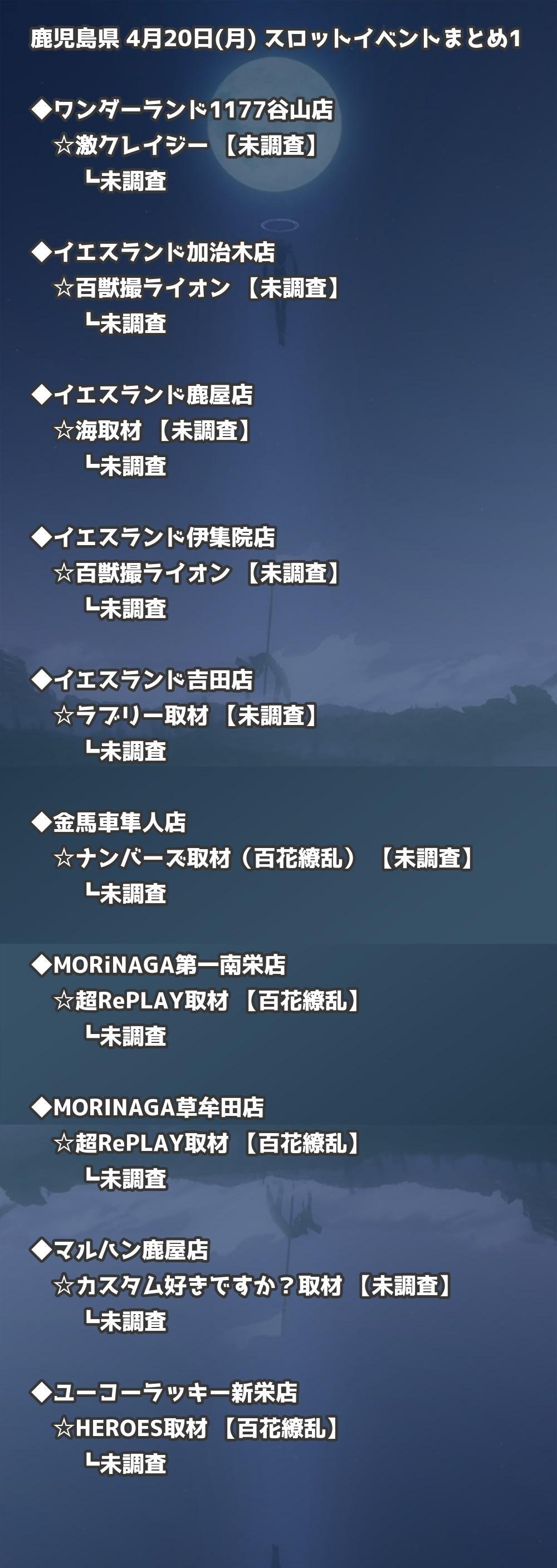 【鹿児島県】4月20日(月) パチンコホールイベント取材まとめ記事です。