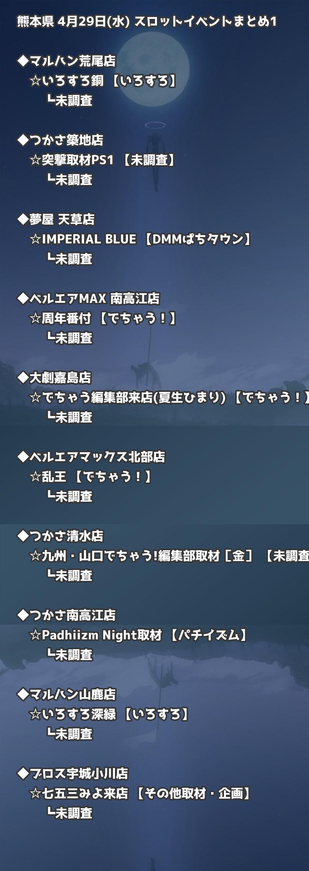 【熊本県】4月29日(水) パチンコホールイベント取材まとめ記事です。