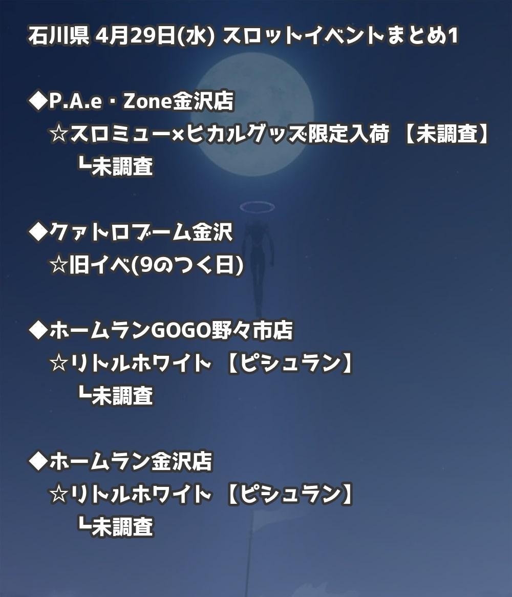 【石川県】4月29日(水) パチンコホールイベント取材まとめ記事です。