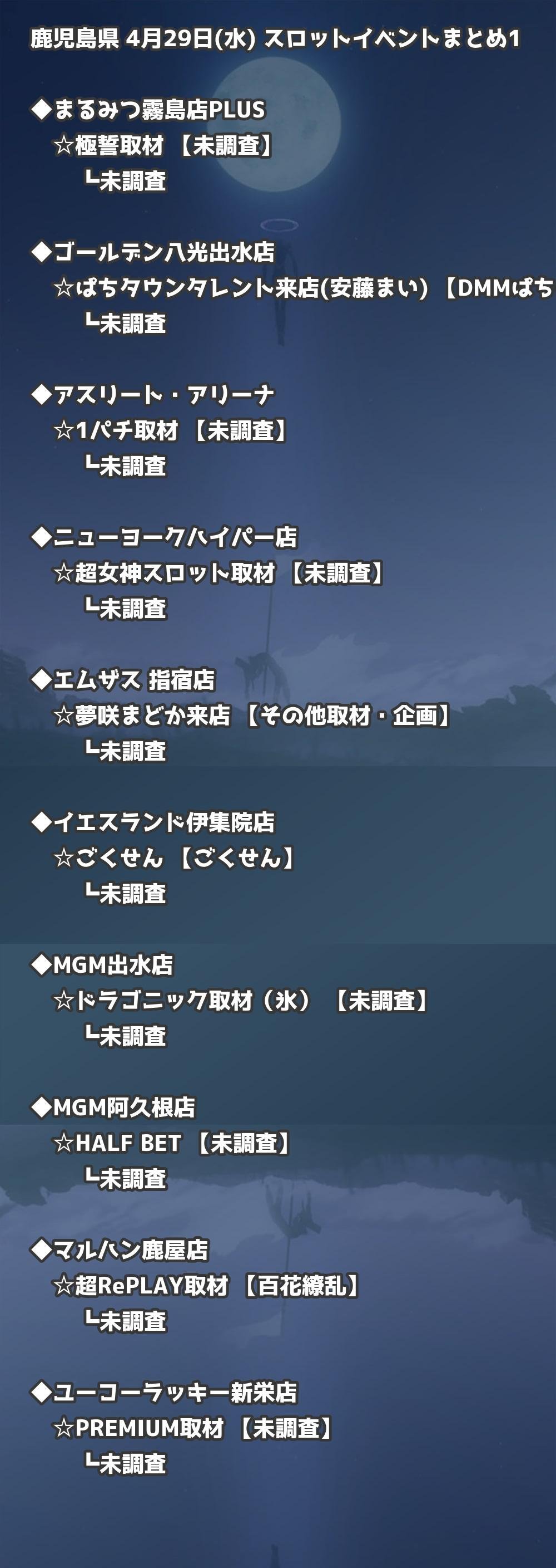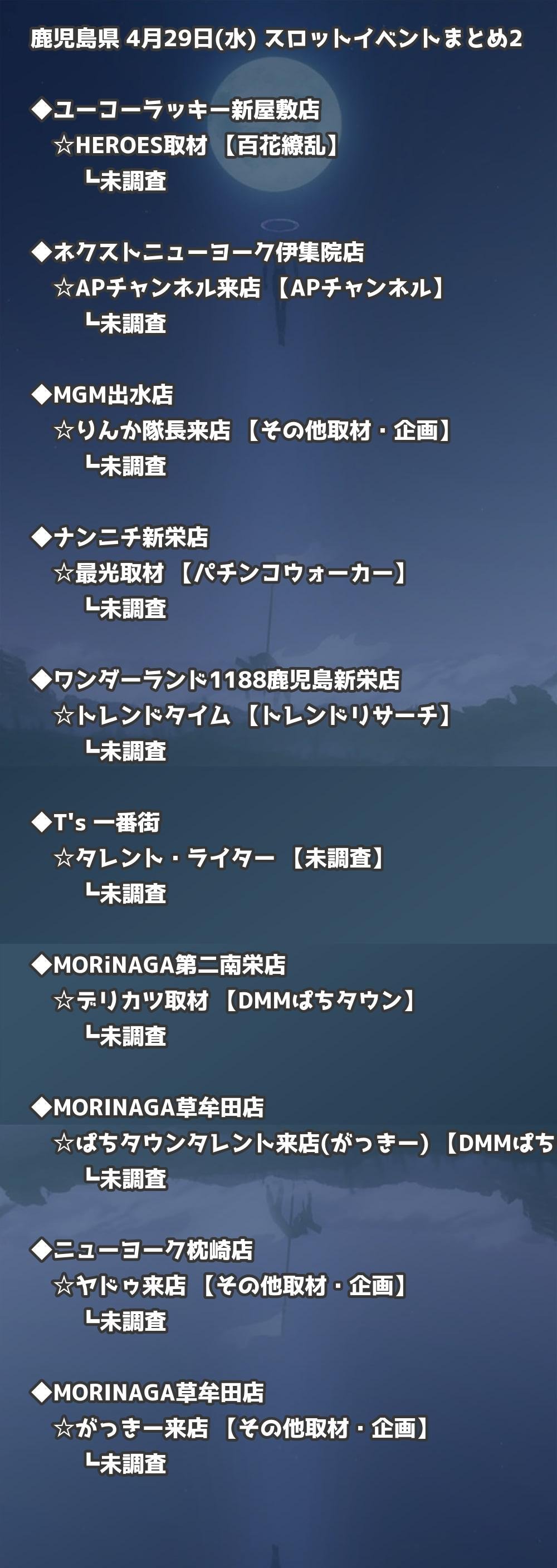 📊 鹿児島県 4月29日(水) 勝てるパチンコ・スロット取材店舗一覧|おすすめ順