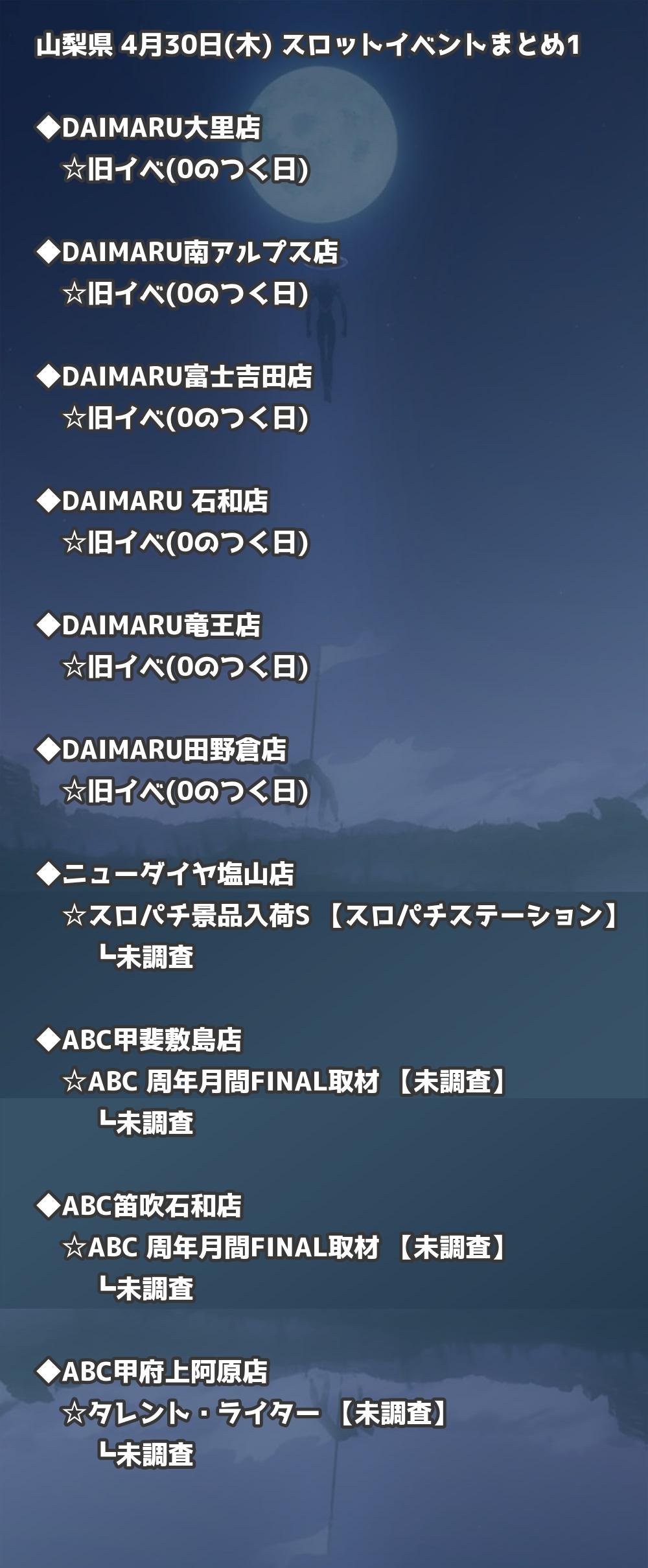 【山梨県】4月30日(木) パチンコホールイベント取材まとめ記事です。