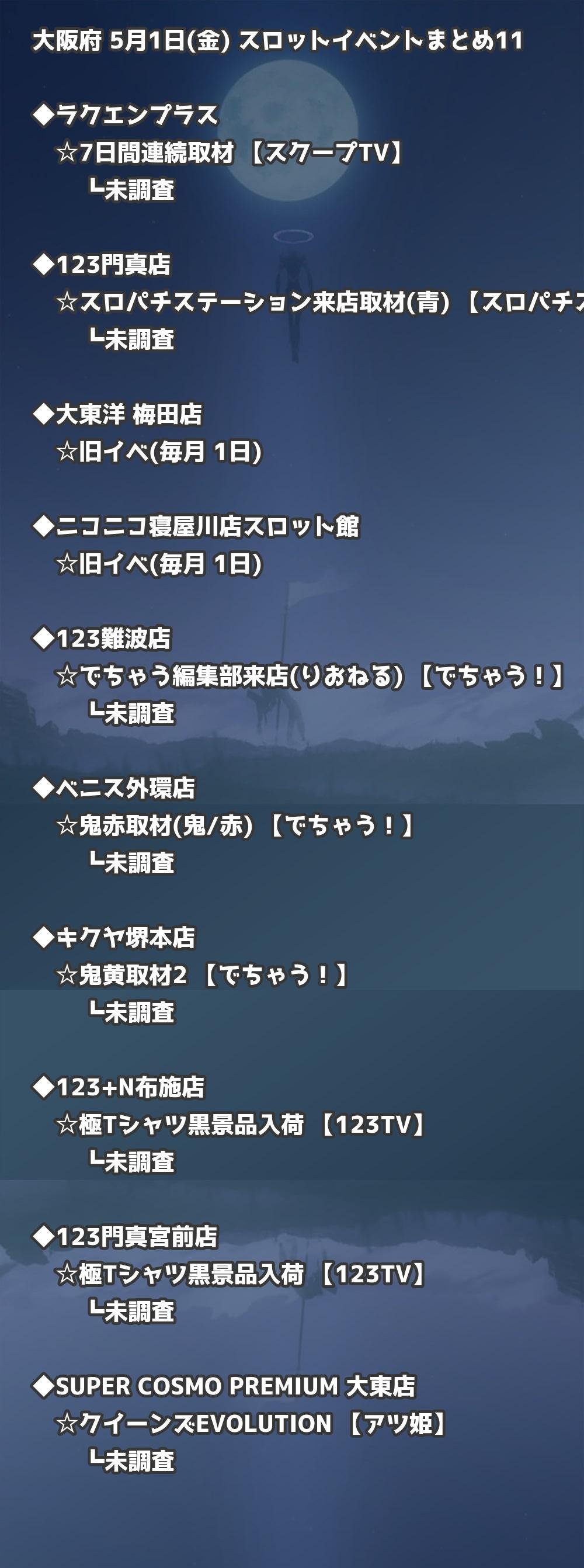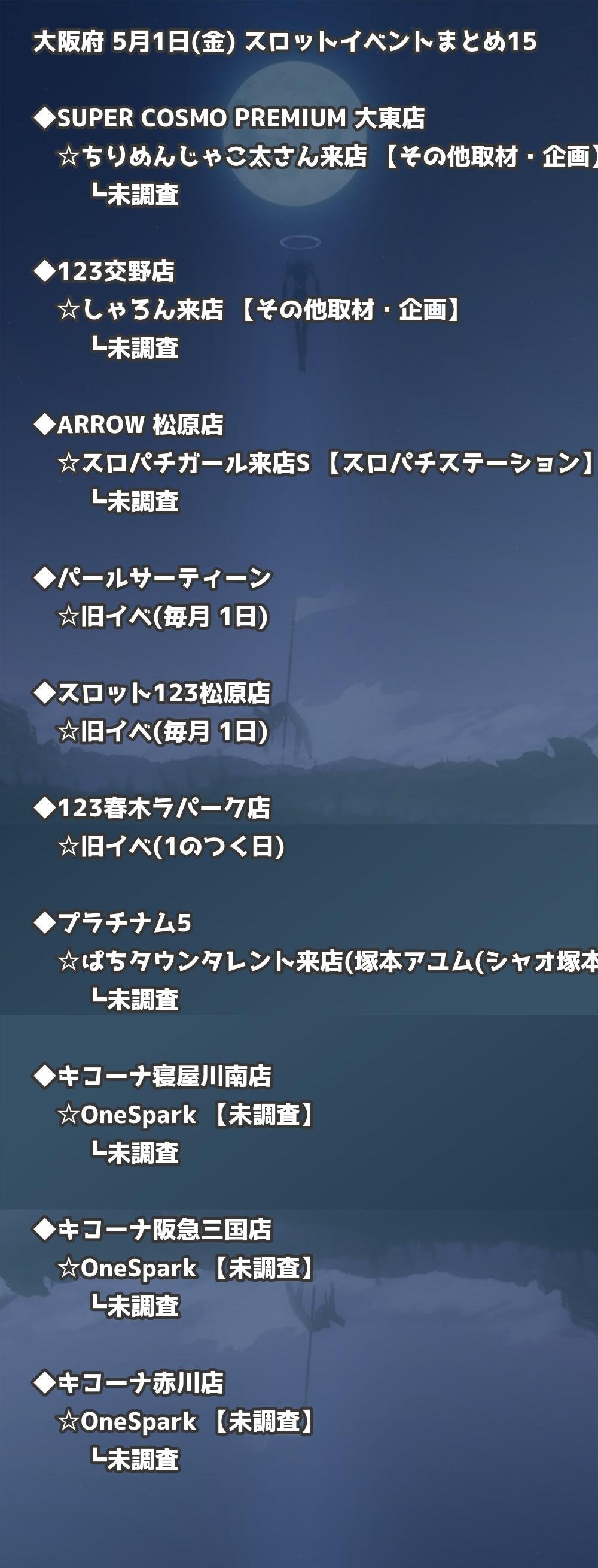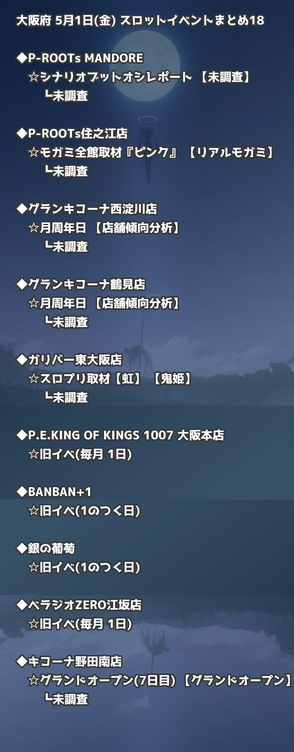 📊 大阪府 5月1日(金) 勝てるパチンコ・スロット取材店舗一覧|おすすめ順
