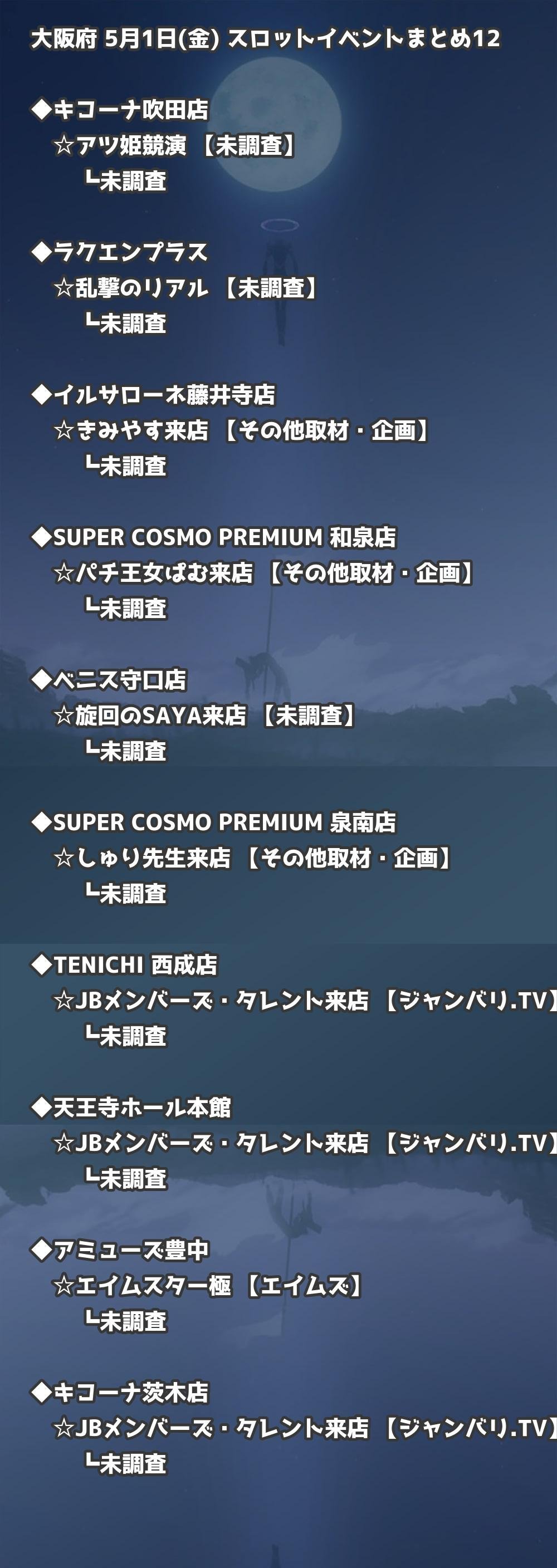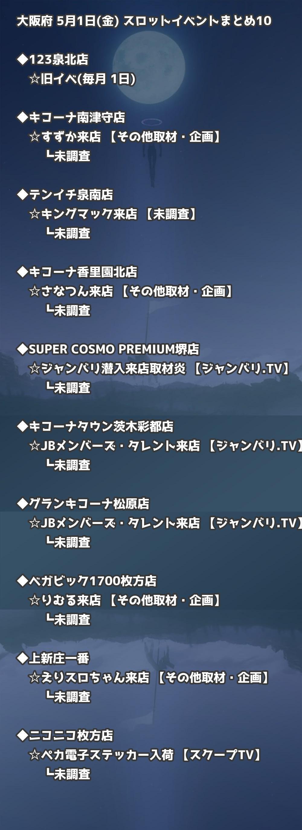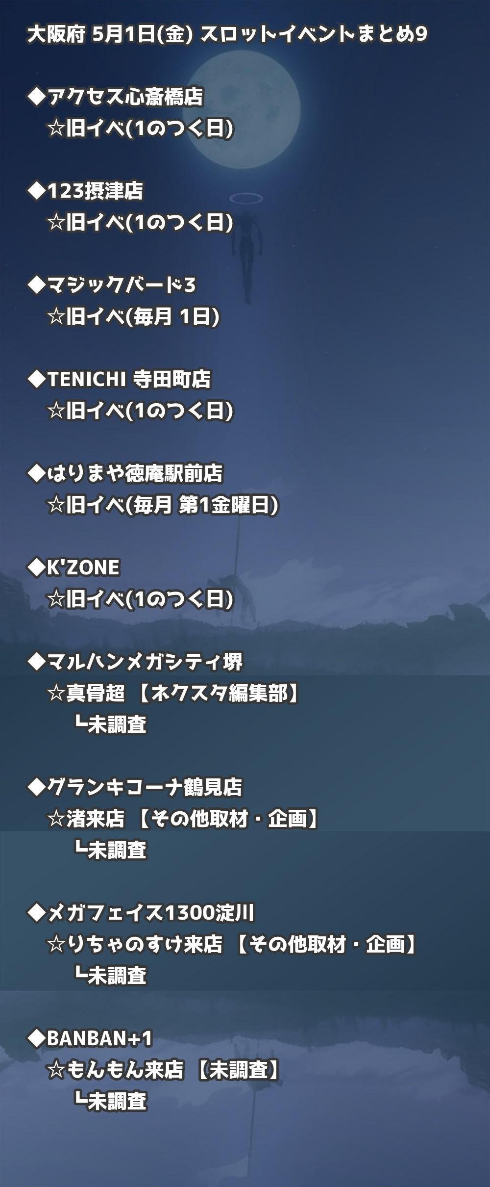 📊 大阪府 5月1日(金) 勝てるパチンコ・スロット取材店舗一覧|おすすめ順
