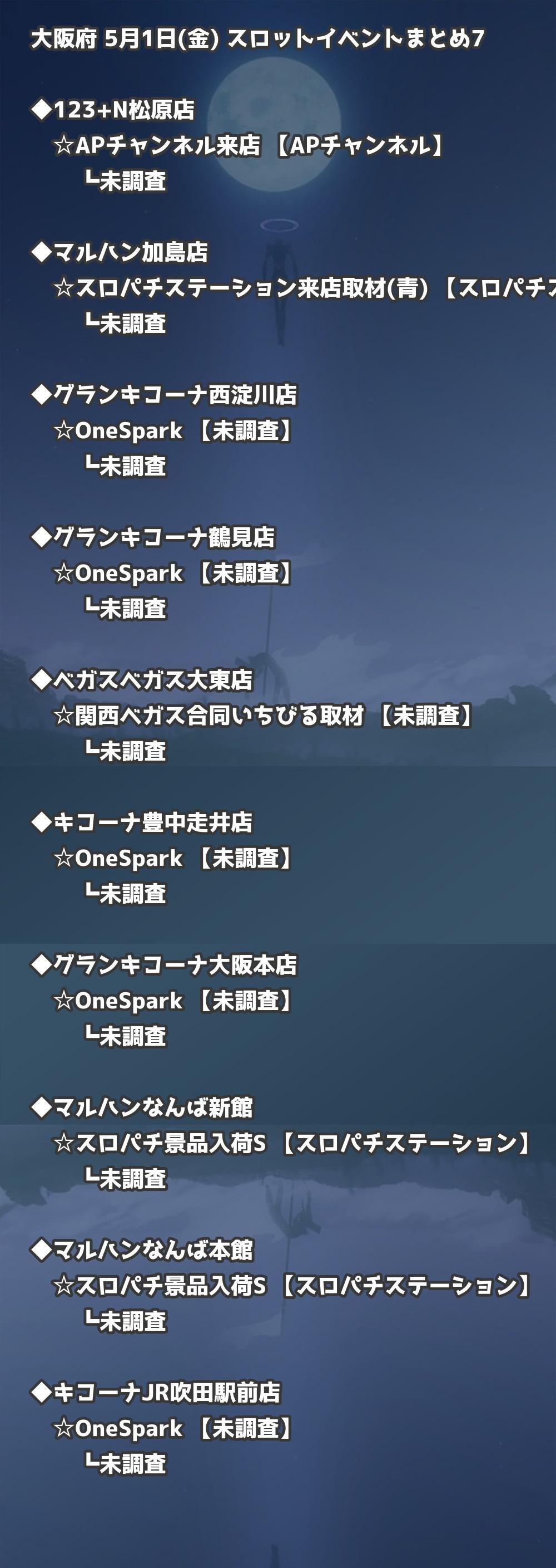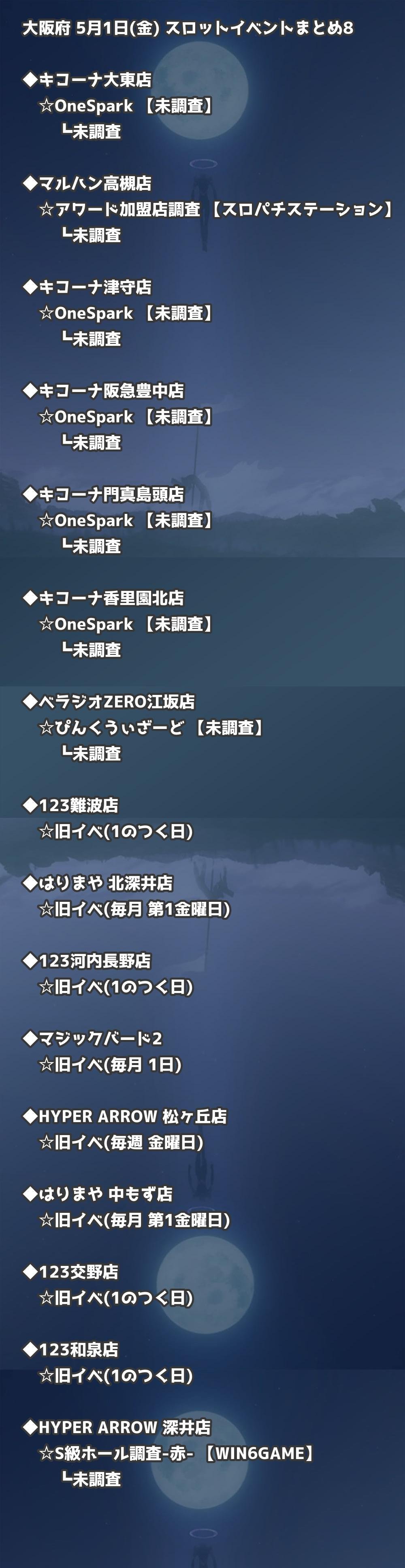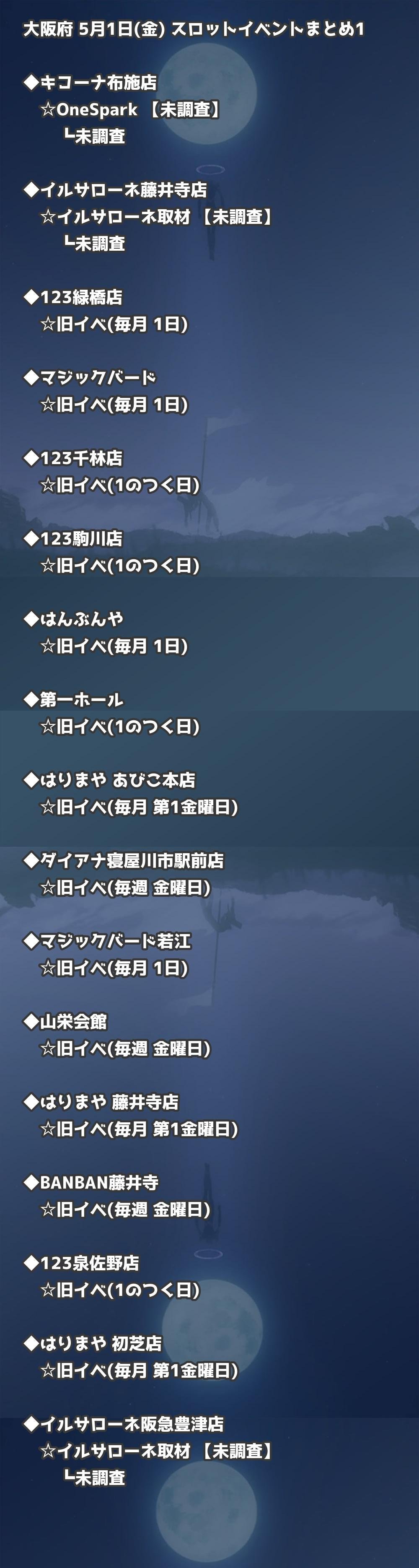 【大阪府】5月1日(金) パチンコホールイベント取材まとめ記事です。