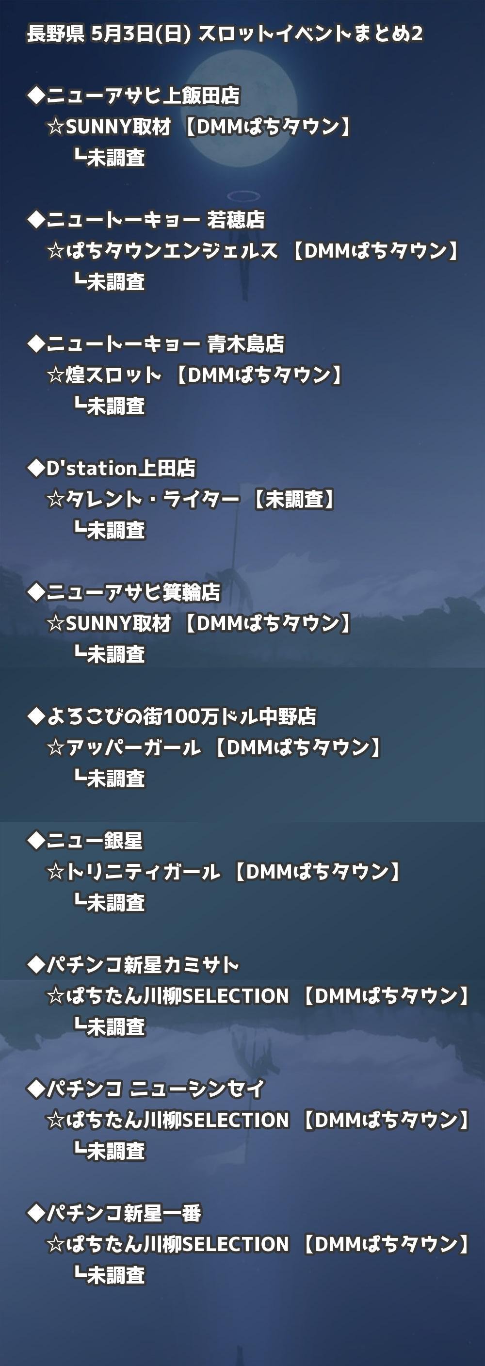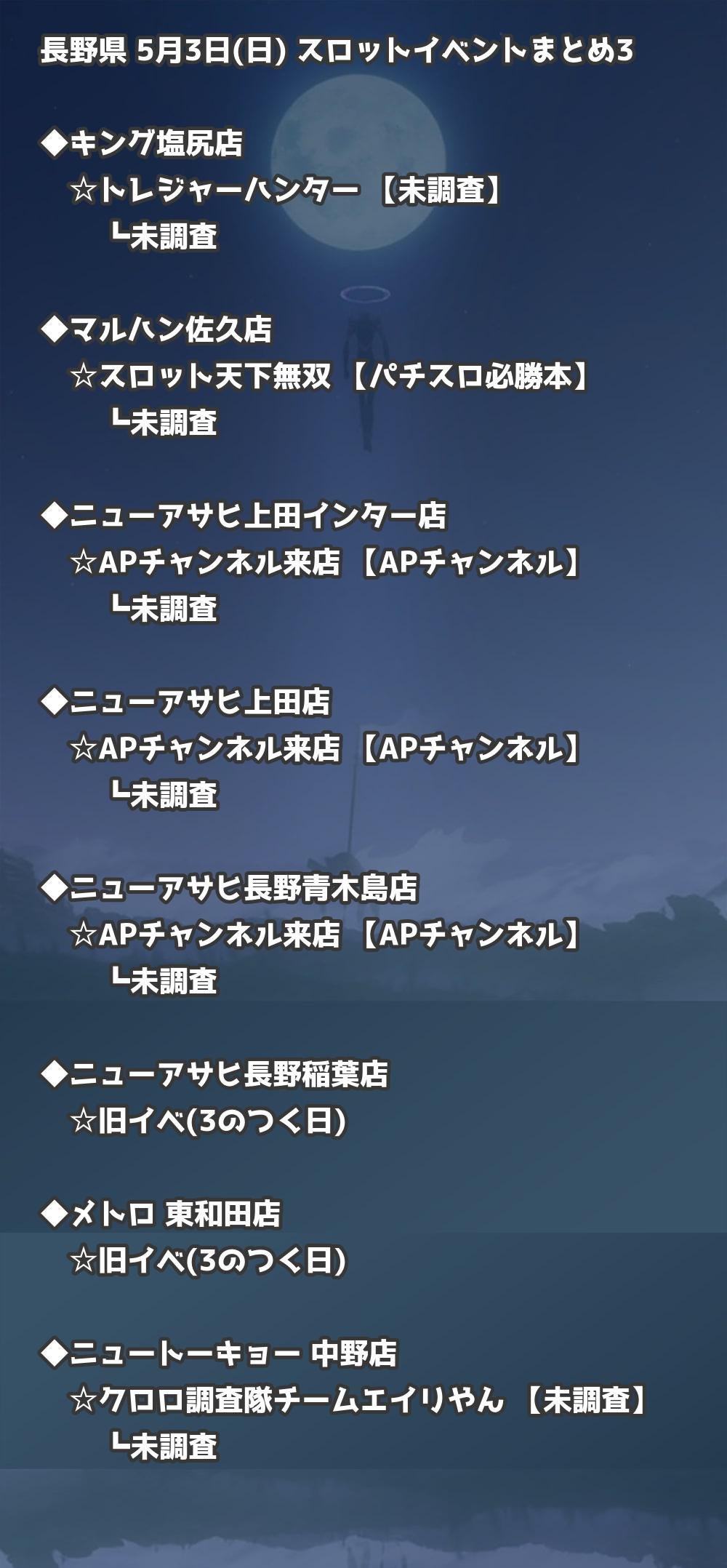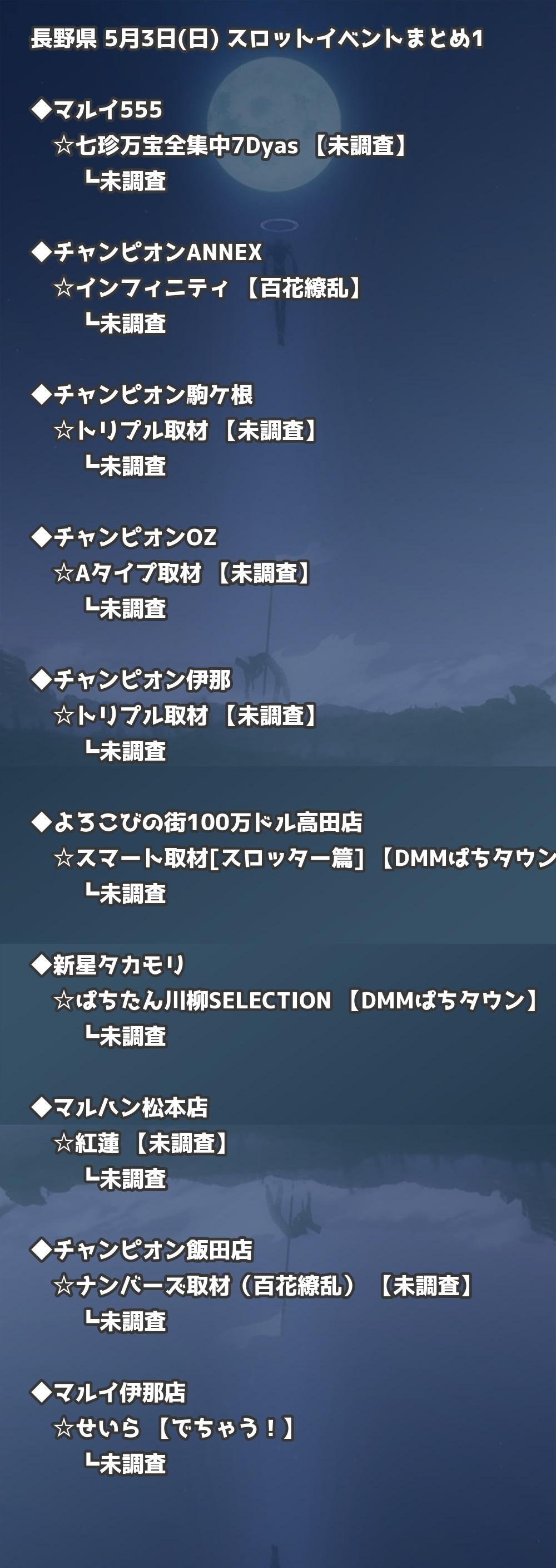 📊 長野県 5月3日(日) 勝てるパチンコ・スロット取材店舗一覧|おすすめ順