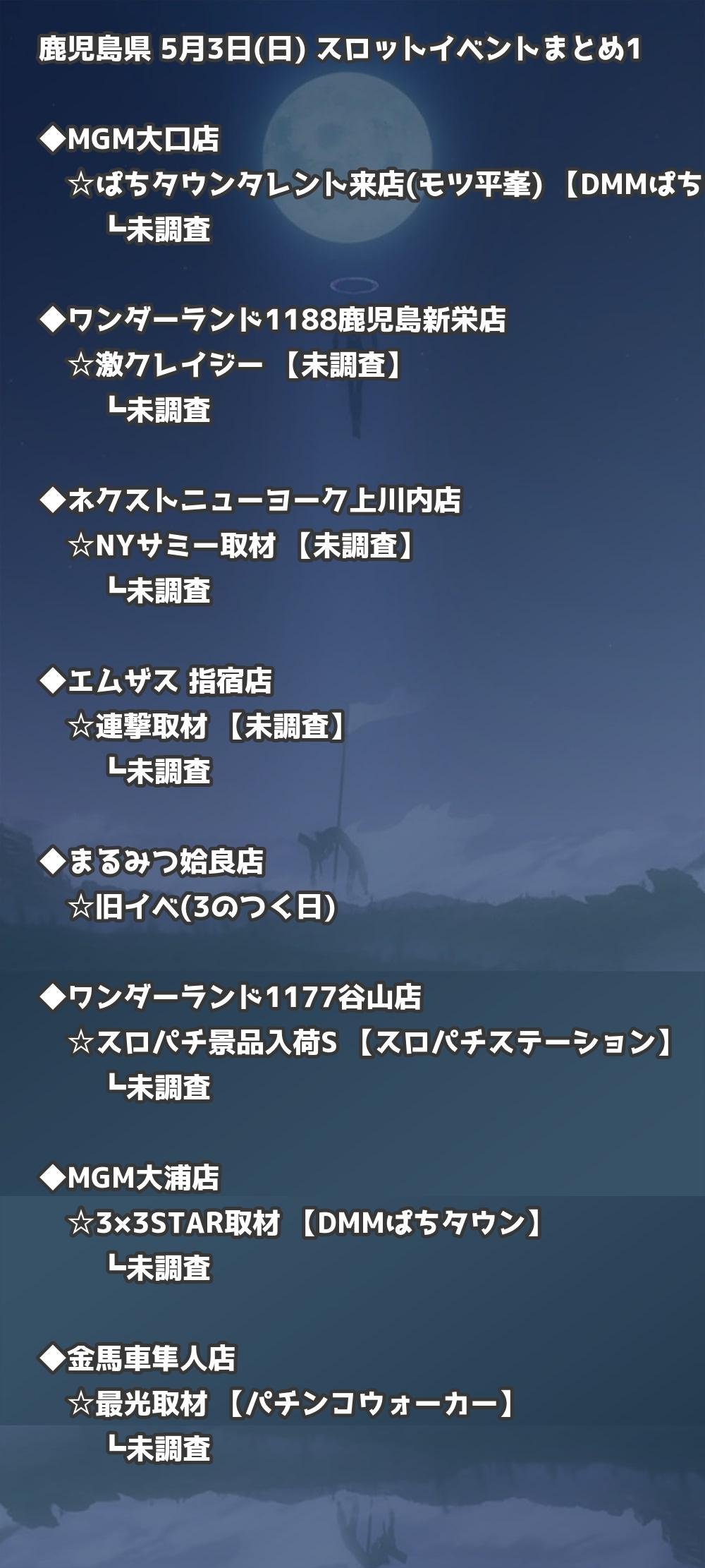 📊 鹿児島県 5月3日(日) 勝てるパチンコ・スロット取材店舗一覧|おすすめ順
