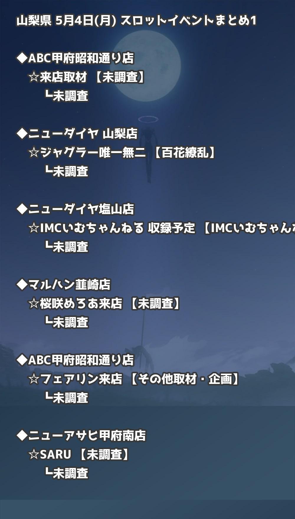📊 山梨県 5月4日(月) 勝てるパチンコ・スロット取材店舗一覧|おすすめ順