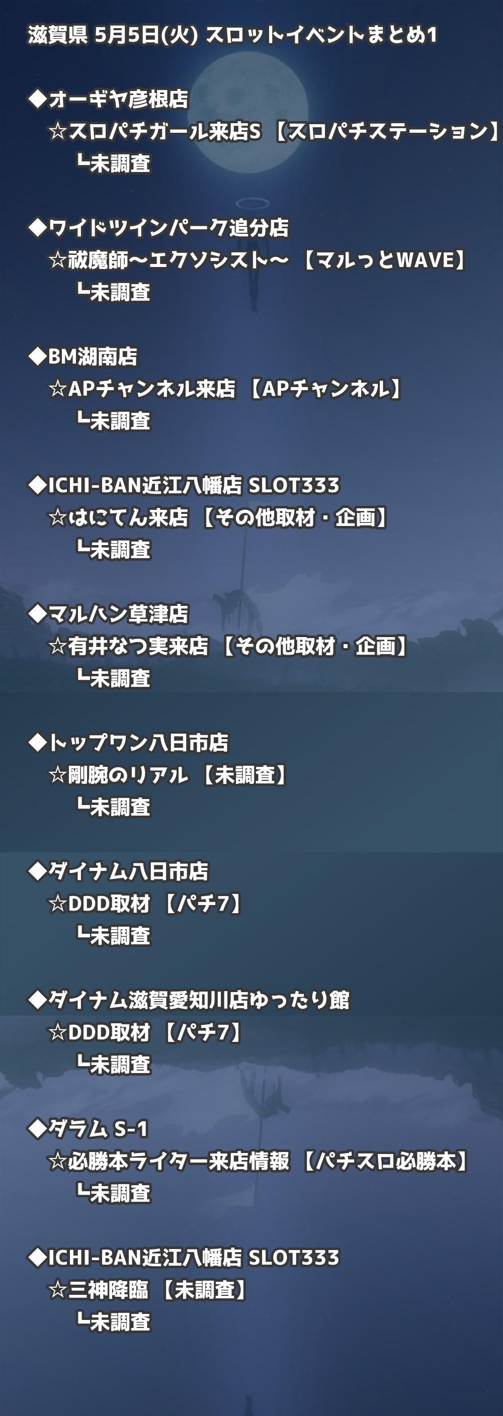 【滋賀県】5月5日(火) パチンコホールイベント取材まとめ記事です。