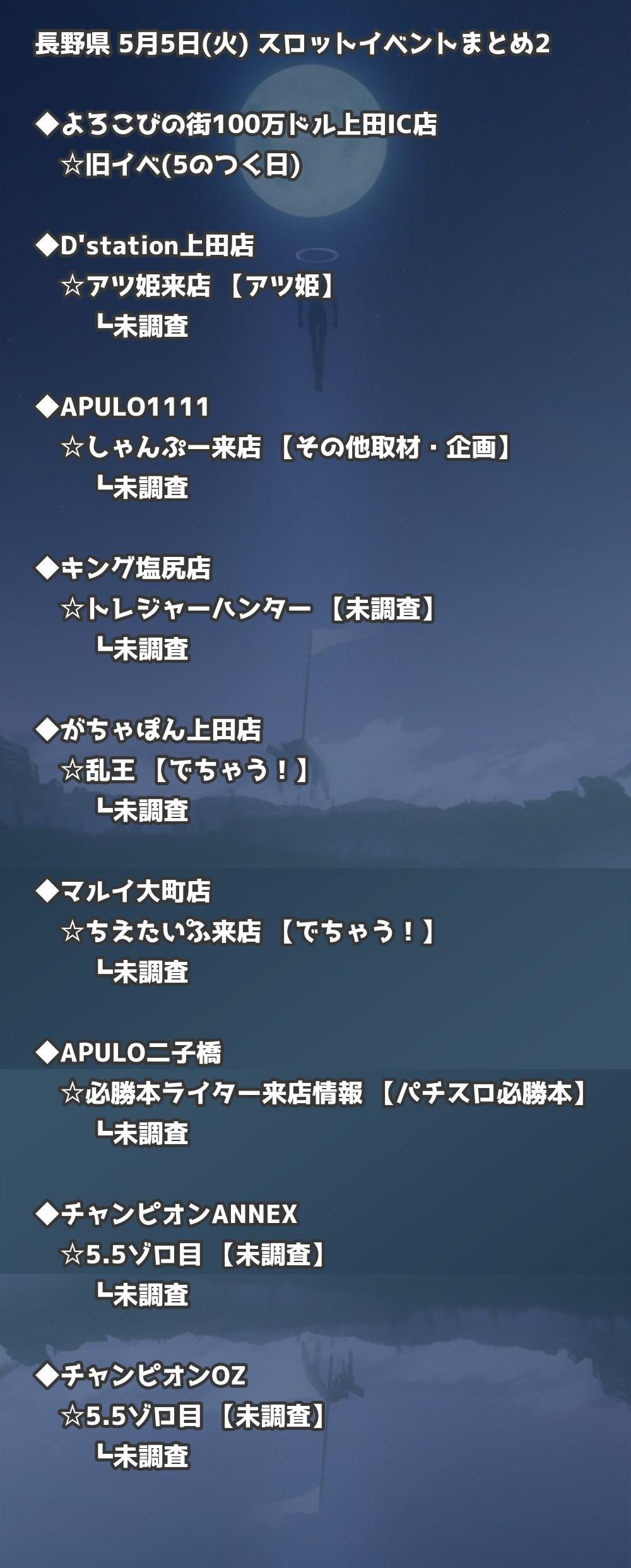 【長野県】5月5日(火) パチンコホールイベント取材まとめ記事です。
